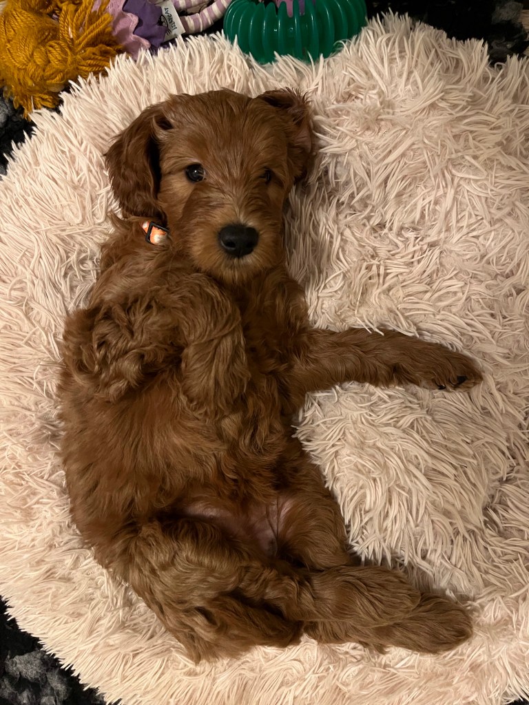 Feetje is een heel stabiel, sociaal en super mensgericht meisje, ze heeft de wauw-factor! Ze is lief, vrolijk, super relaxed en heel slim. Ze is een kleine medium met een heel mooie rode fleece vacht. Hopelijk zal ze ons in de toekomst lieve pups gaan geven.